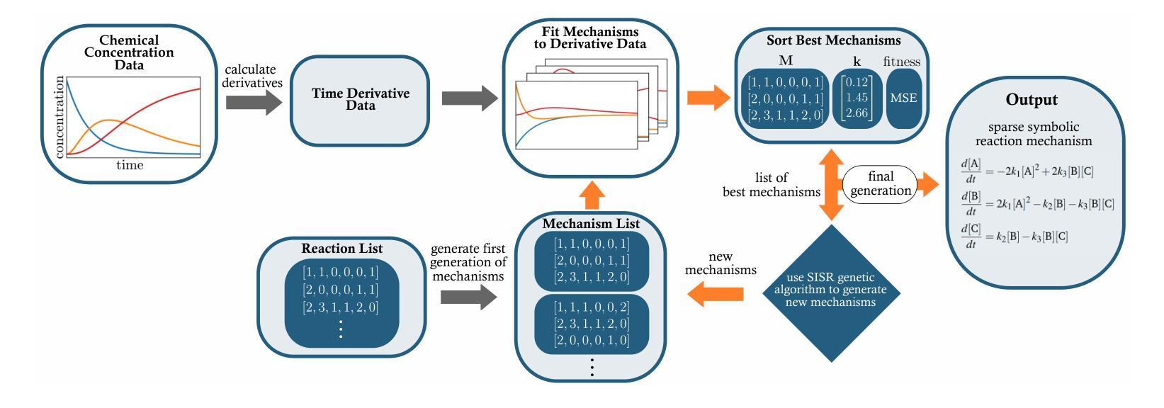 - 引入了一种数据驱动的计算方法,能够从时间序列化学浓度数据中提取化学反应机理。