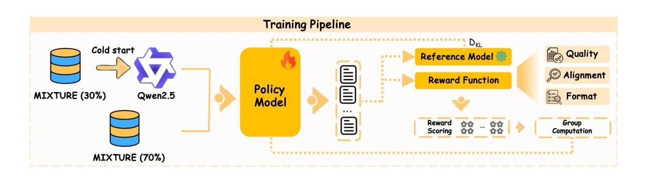 - LM-Mixup方法结合了监督微调与强化学习优化,使用三个互补奖励信号来提高模型性能。