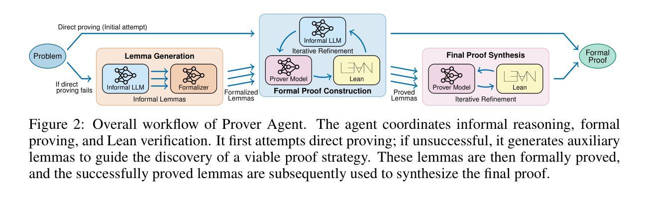 - Prover Agent能协调非正式推理LLM、形式化证明模型和来自Lean的反馈。