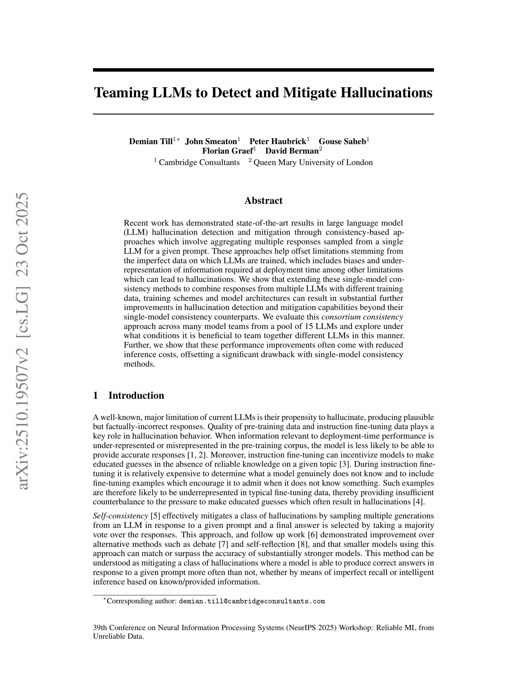 - 结合多个具有不同训练数据、方案和架构的LLM响应,实现了幻觉检测与缓解能力的进一步提高。