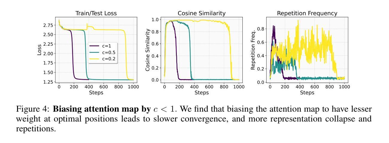 - 模型输出出现重复倾向的现象。这是因为模型的隐藏状态(内部表示)崩溃所导致的,表现为不同令牌之间的隐藏状态近似平行化。这表明模型的表达能力在这个阶段是有限的并且有一定的倾向性偏差问题存在,可能在某个时期未有效获取信息的不同形式之间的关系而导致了一些程度的内部表述坍缩问题。。这对于模型性能和鲁棒性有影响会引入潜在问题甚至使系统难以继续学习和改进表现水平在面临更复杂或多样的问题时可能出现困难影响系统的表现。我们应该注意监控模型以避免这一现象的产生和开发预防措施以提高系统的通用能力和学习效果尤其是在接近构建完备的算法语言或文本生成的机器系统中格外重视需要维持好的表达方式的选择或着最小化知识表示中的冗余和混淆问题来避免此类现象的发生。。
