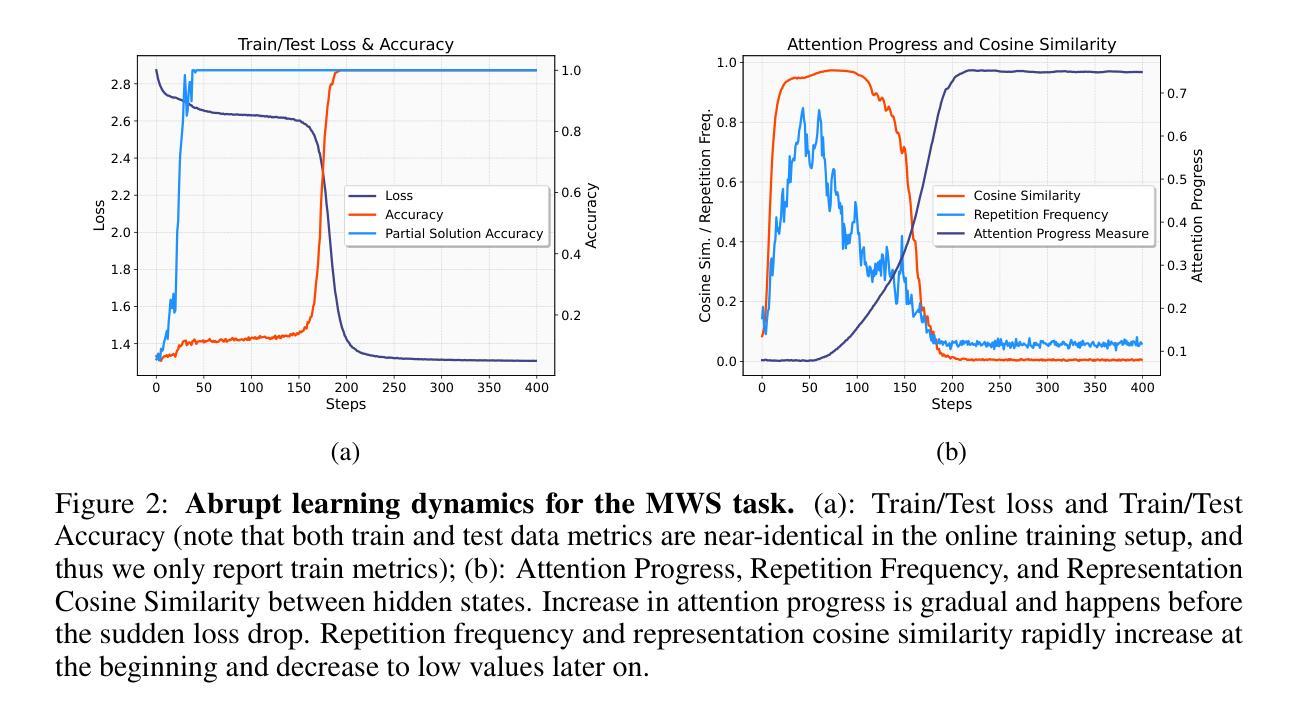 - Transformer模型在算法任务训练时会出现性能稳定期后的突然提升现象。