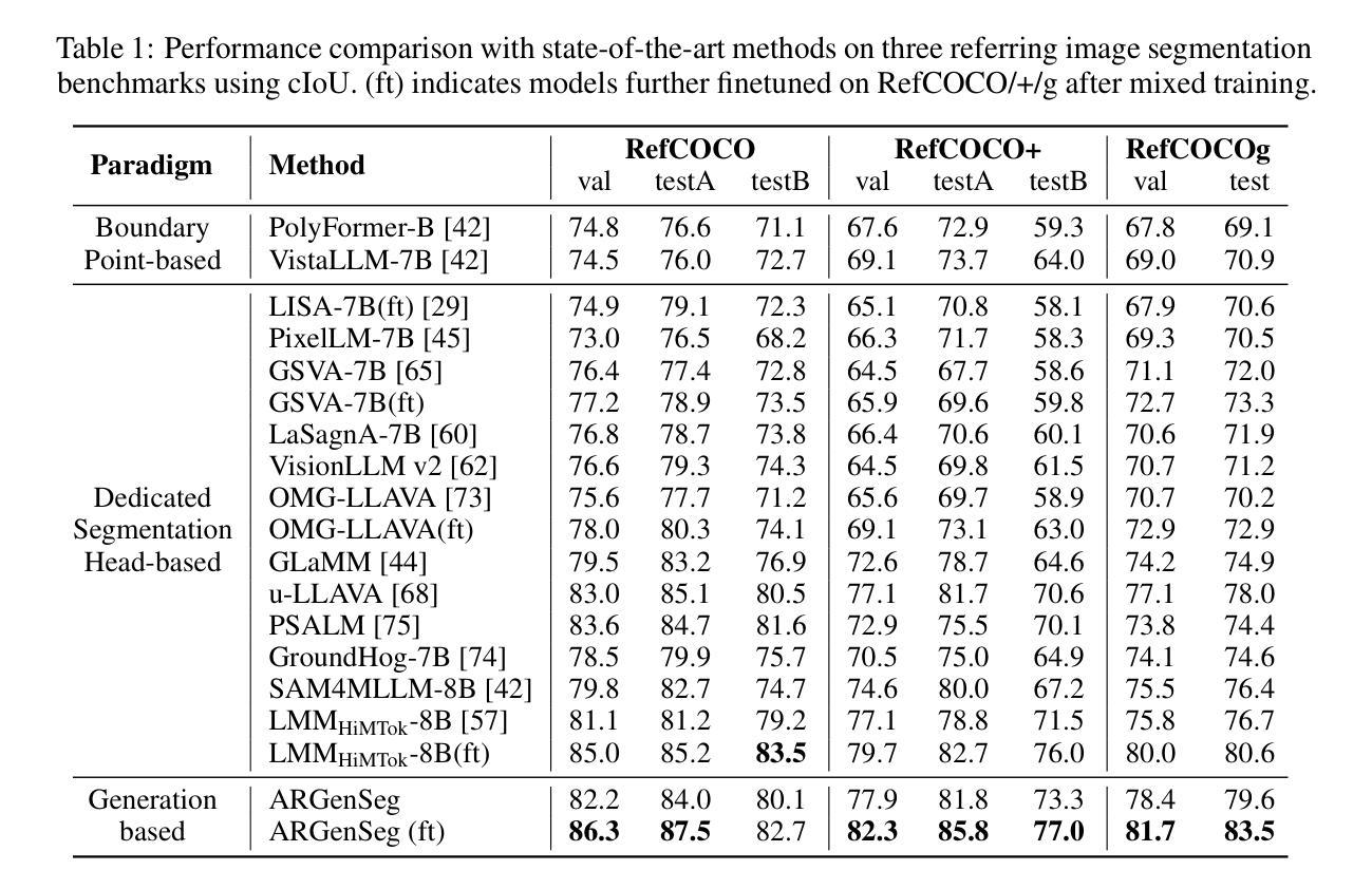 - 提出了一种基于AutoRegressive Generation的新型图像分割范式(ARGenSeg)。
