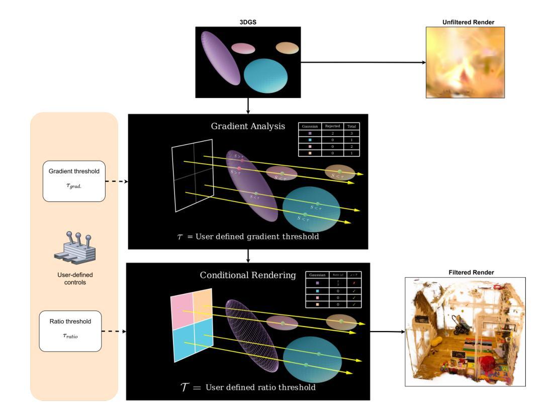 - 滤波器可无缝集成到现有3DGS渲染管线中,实现实时操作。