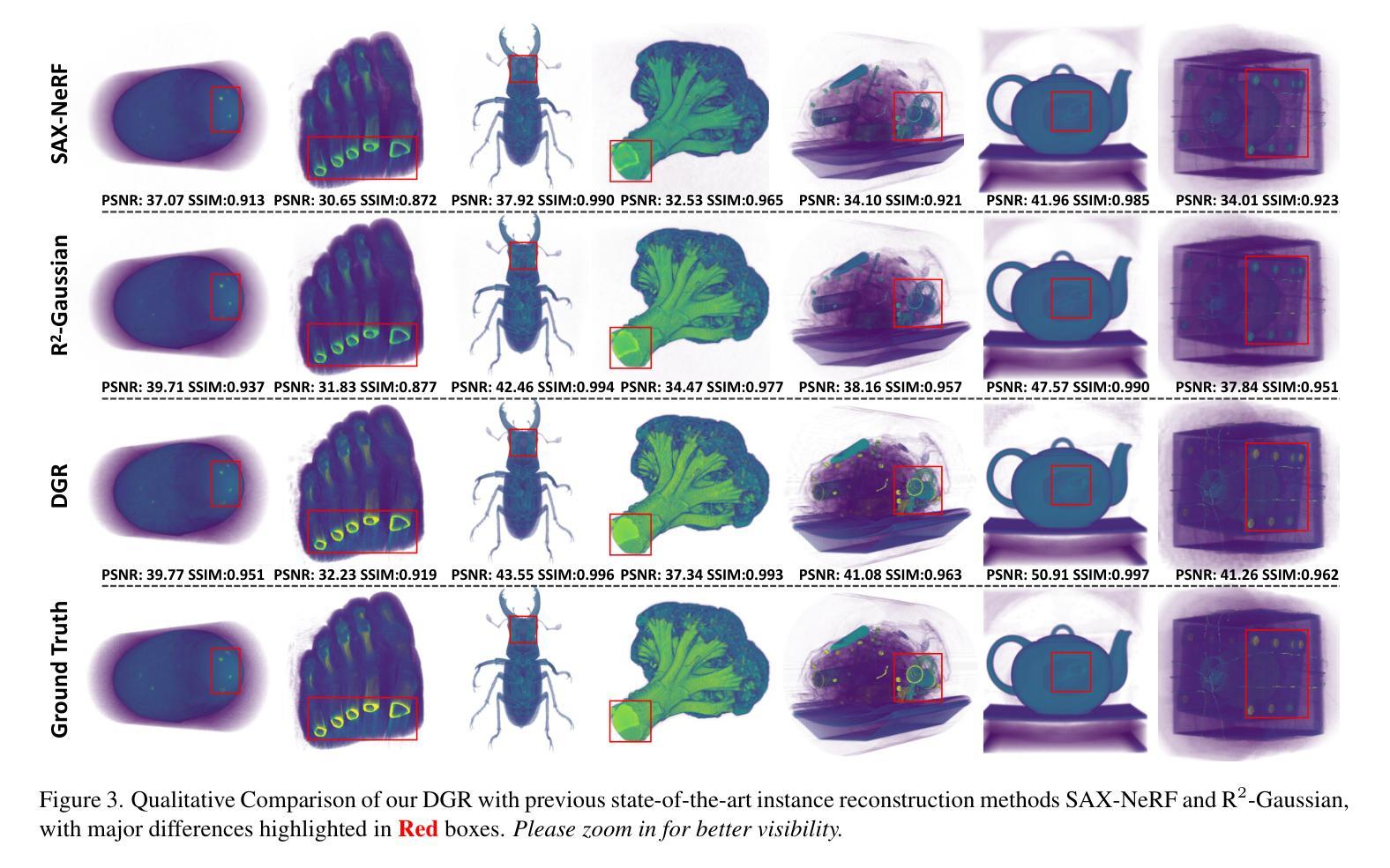 - DGR在各种CT重建场景中均表现出卓越的性能,包括在实际和合成数据集上的广泛实验验证。