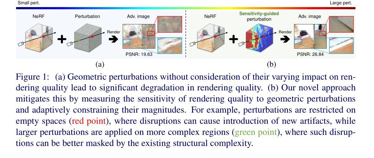 - 敏感性场用于自适应约束几何扰动,保持高渲染质量。