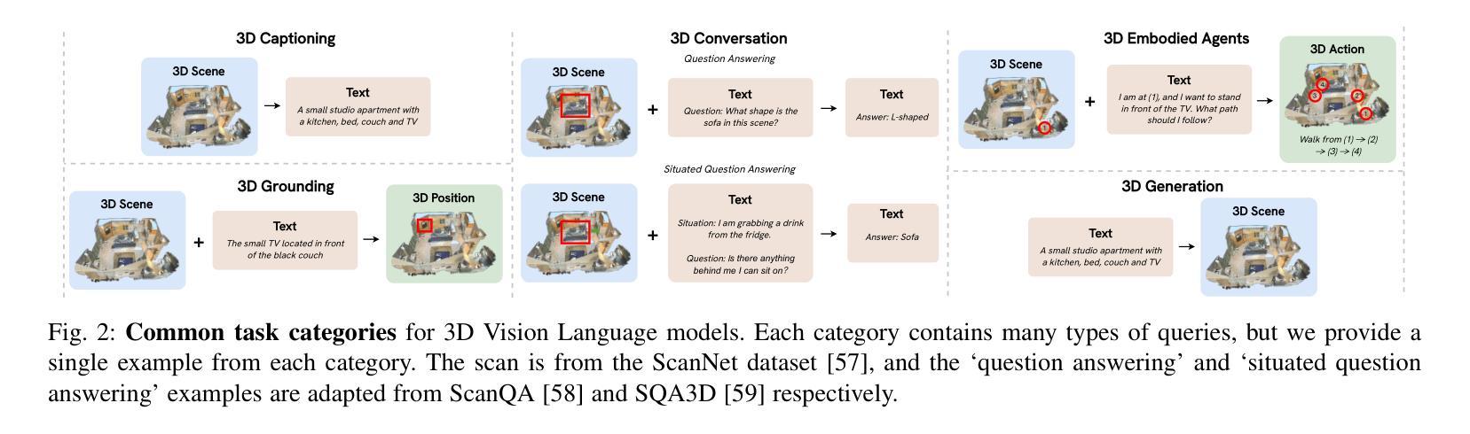 - LLMs在三维场景理解、标注、问答、对话等方面应用广泛。