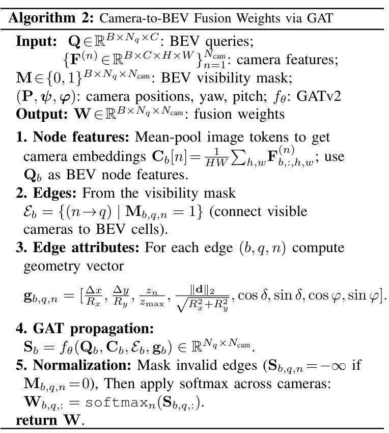 - 图增强融合模块利用几何关系和潜在视觉线索进行多视角图像特征融合。