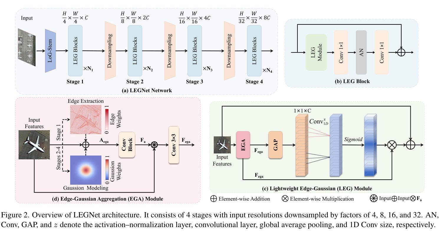 - LEGNet是一种轻量级骨干网络,包含新型EGA模块,旨在增强从低质量遥感图像中派生的特征表示。