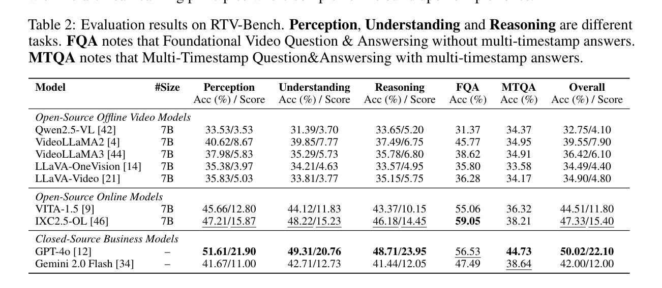 - RTV-Bench是一个新的基准测试,用于评估多模态大型语言模型在实时视频分析方面的性能。