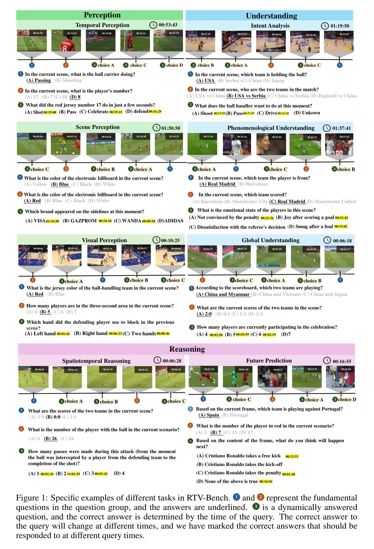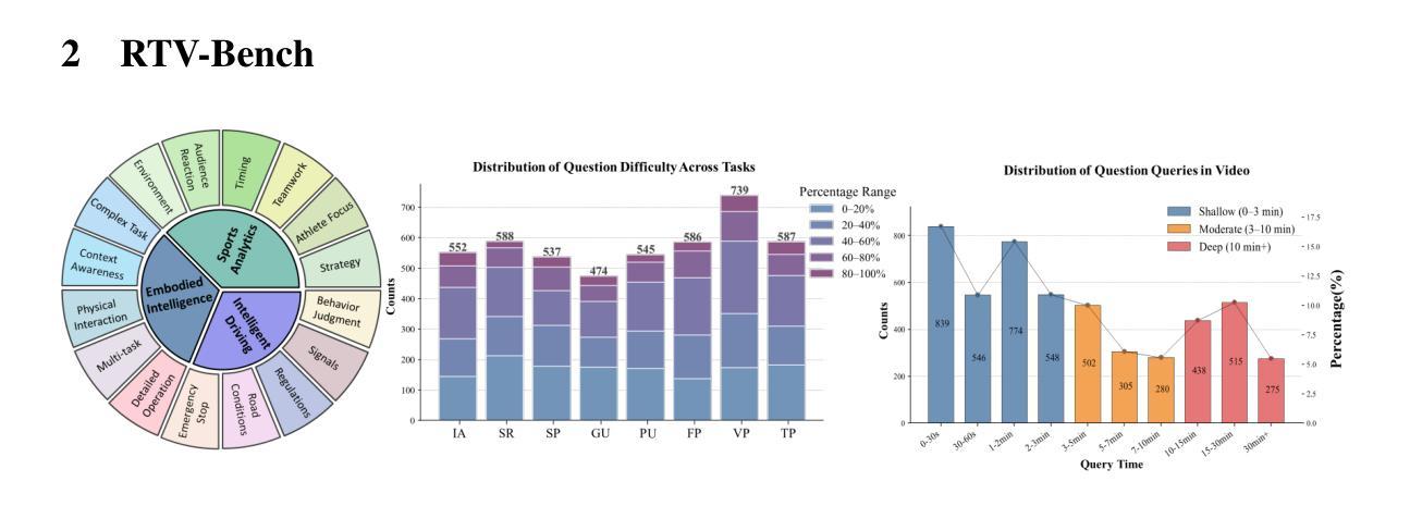- RTV-Bench采用三个关键原则:多时间戳问答、分层问题结构和多维度评估。