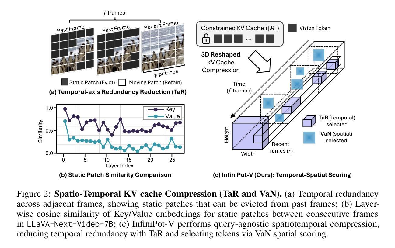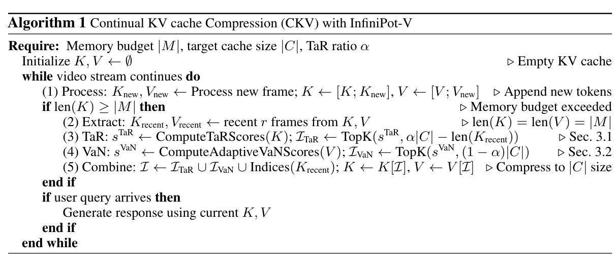 - 通过时间轴冗余和值范数排名机制,InfiniPot-V去除冗余并保持语义重要性。