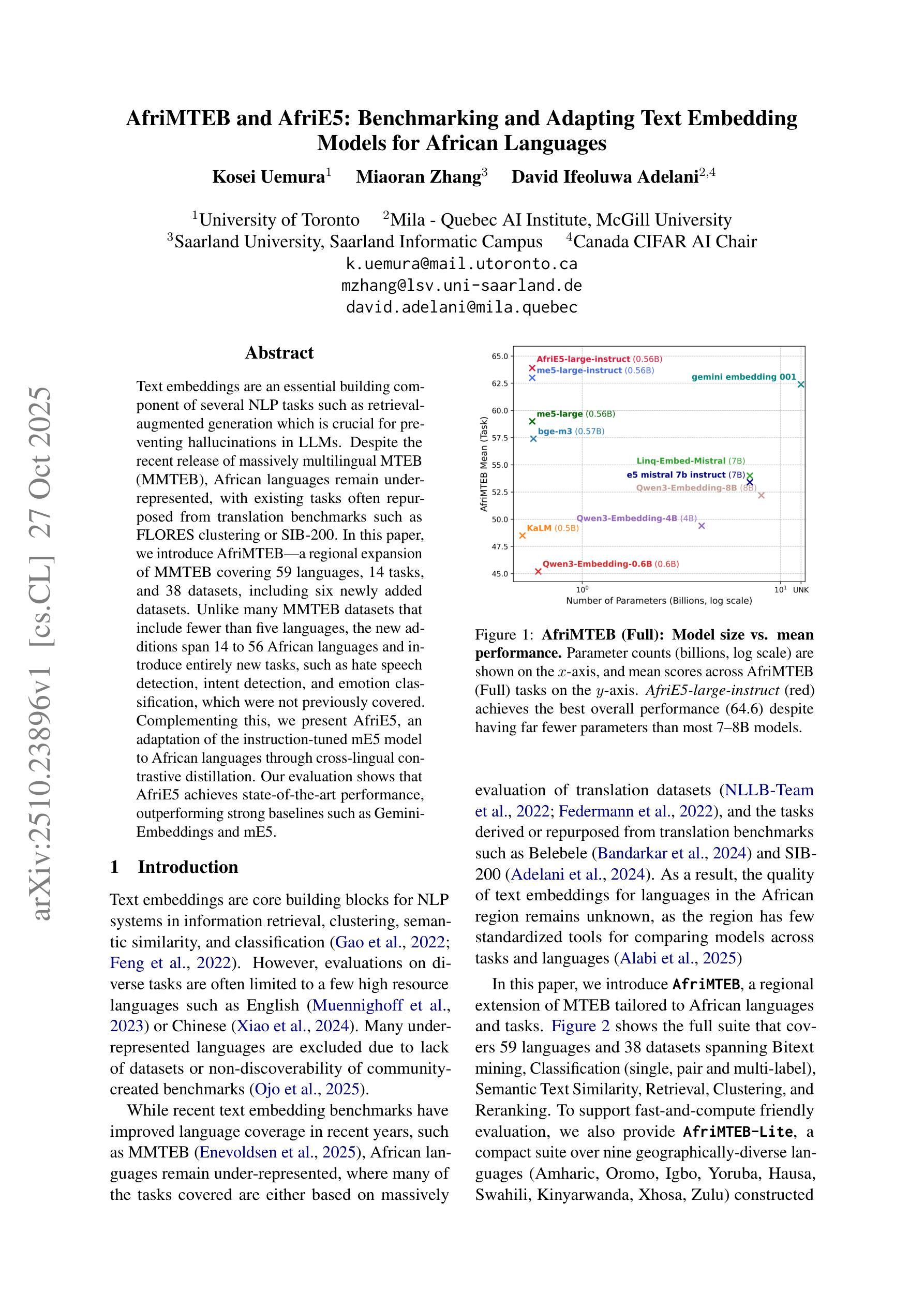 - 尽管近期推出了大规模多语种文本嵌入库(MMTEB),但非洲语言仍然被忽视。