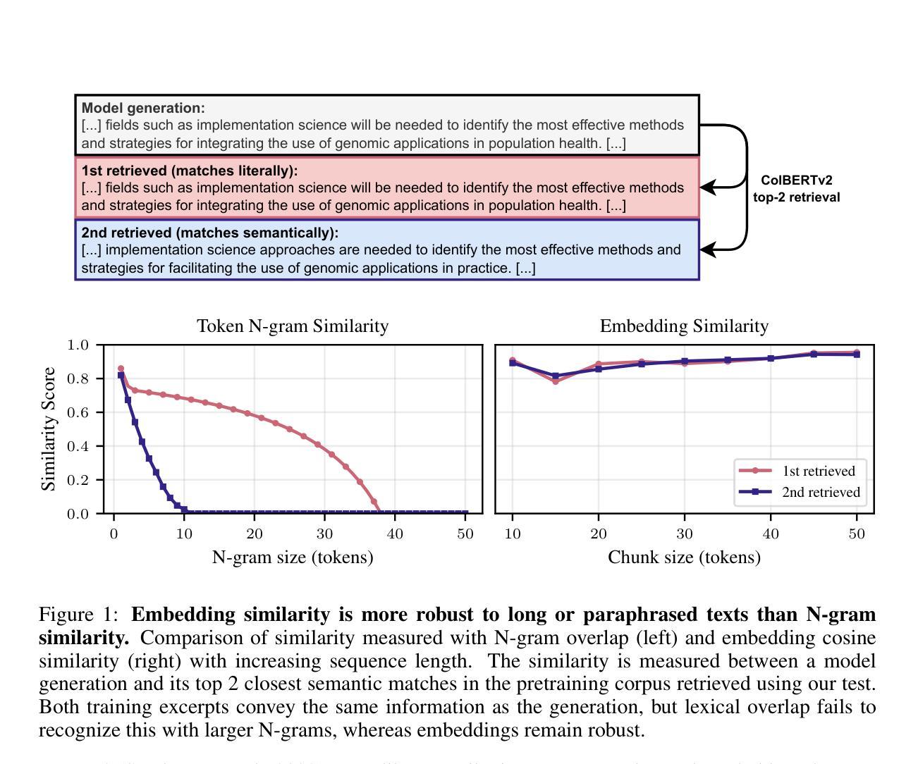 - 通过倒排索引和基于GIST嵌入的检索方法,发现模型依赖预训练数据的跨度更长。