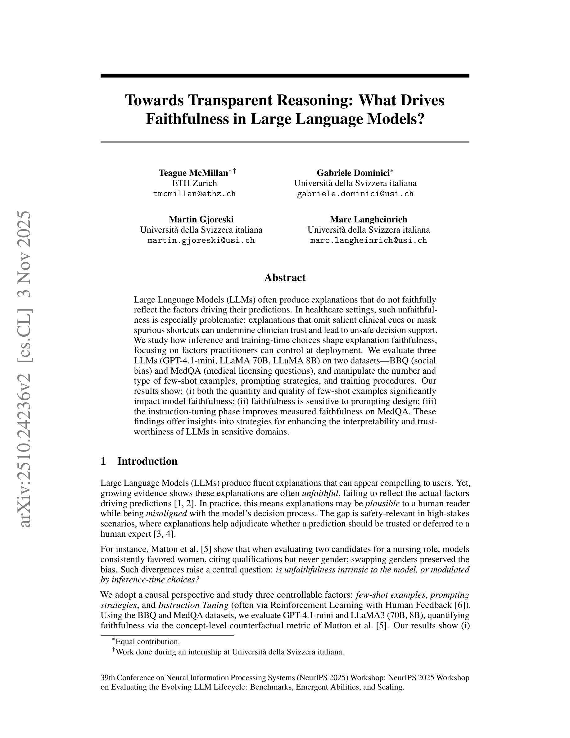 - 大型语言模型(LLM)的解释可能不真实反映其预测背后的因素,特别是在医疗环境中需特别关注。