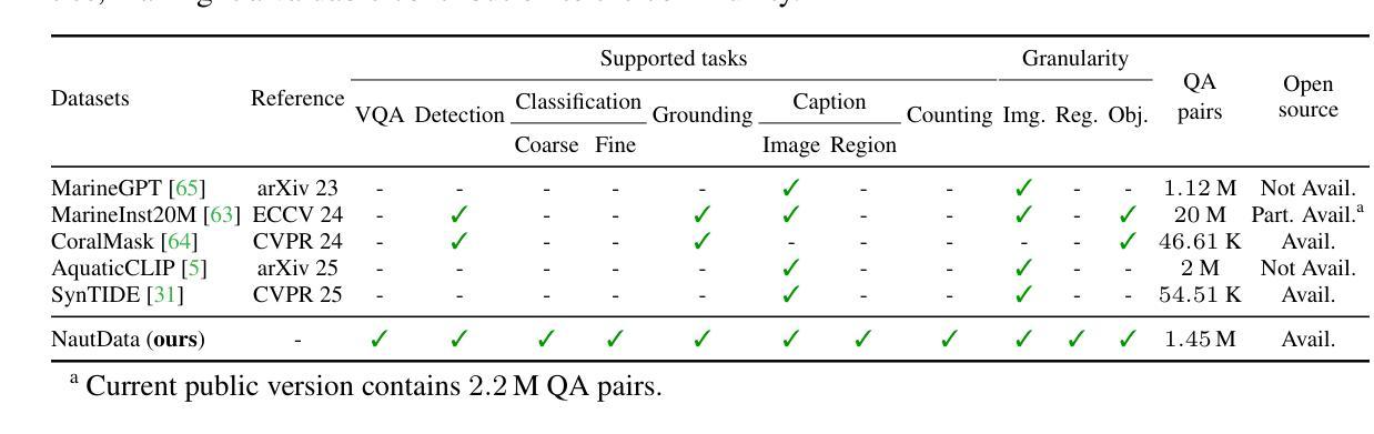 - NautData数据集的建立填补了这一空白,支持水下场景理解的八个任务。