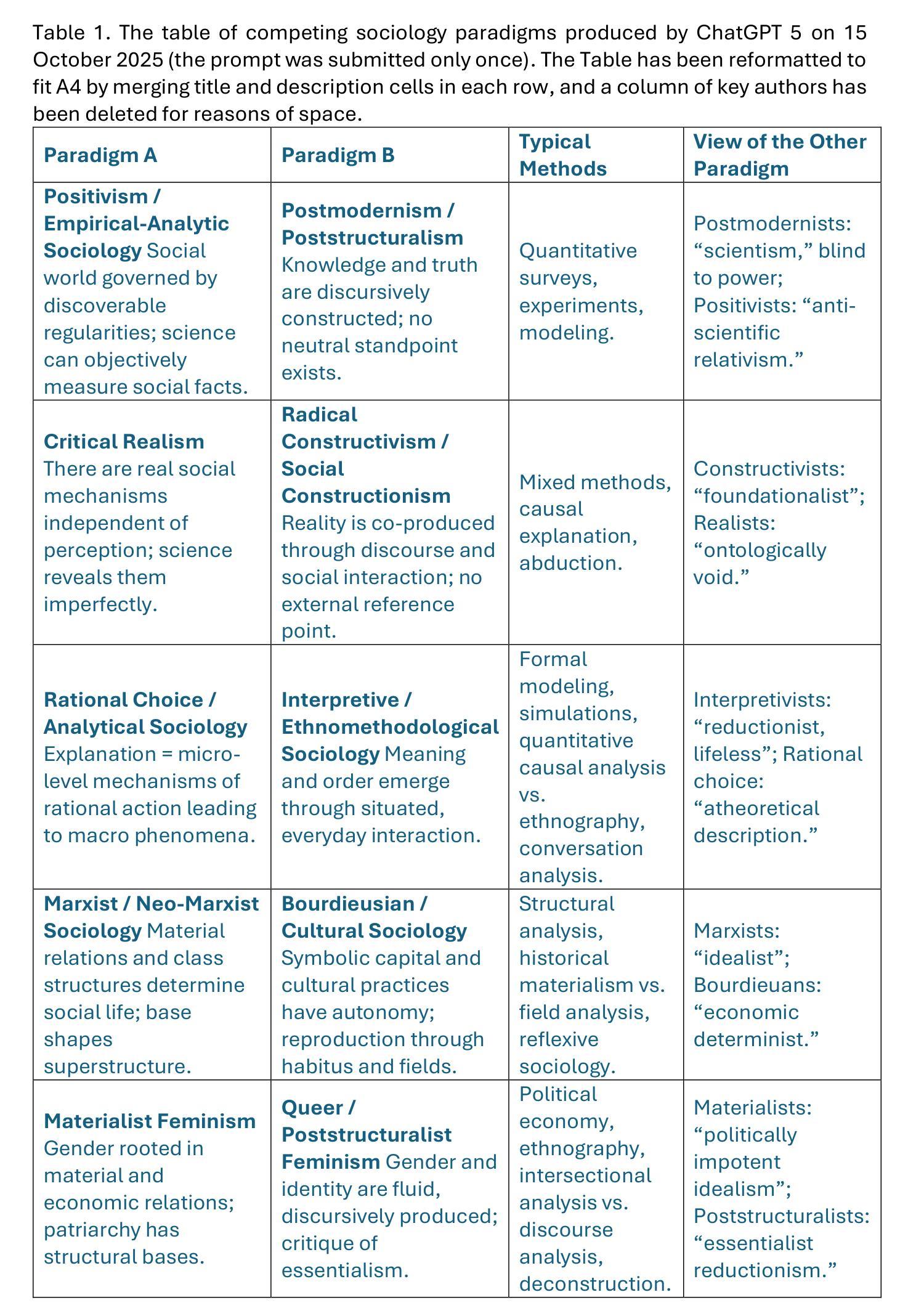 Can ChatGPT be a good follower of academic paradigms? Research quality evaluations in conflicting areas of sociology