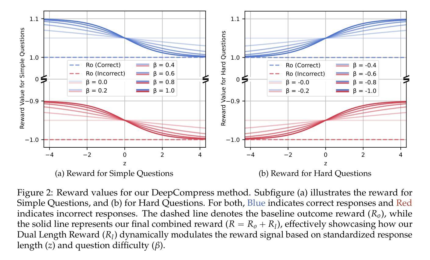 - 对于简单问题,DeepCompress鼓励简短高效的推理;对于复杂问题,它促进更长的探索性思维链。