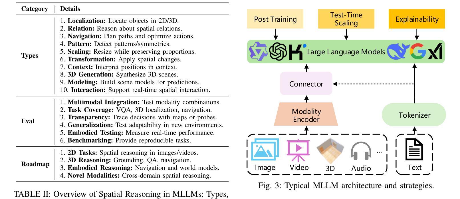 - 文章全面回顾了多模态空间推理任务,涉及大型模型的应用和发展。