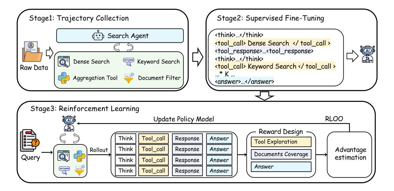 - MARAG-R1配备了语义搜索、关键词搜索、过滤和聚合四种检索工具,并通过两阶段训练过程学习使用这些工具。