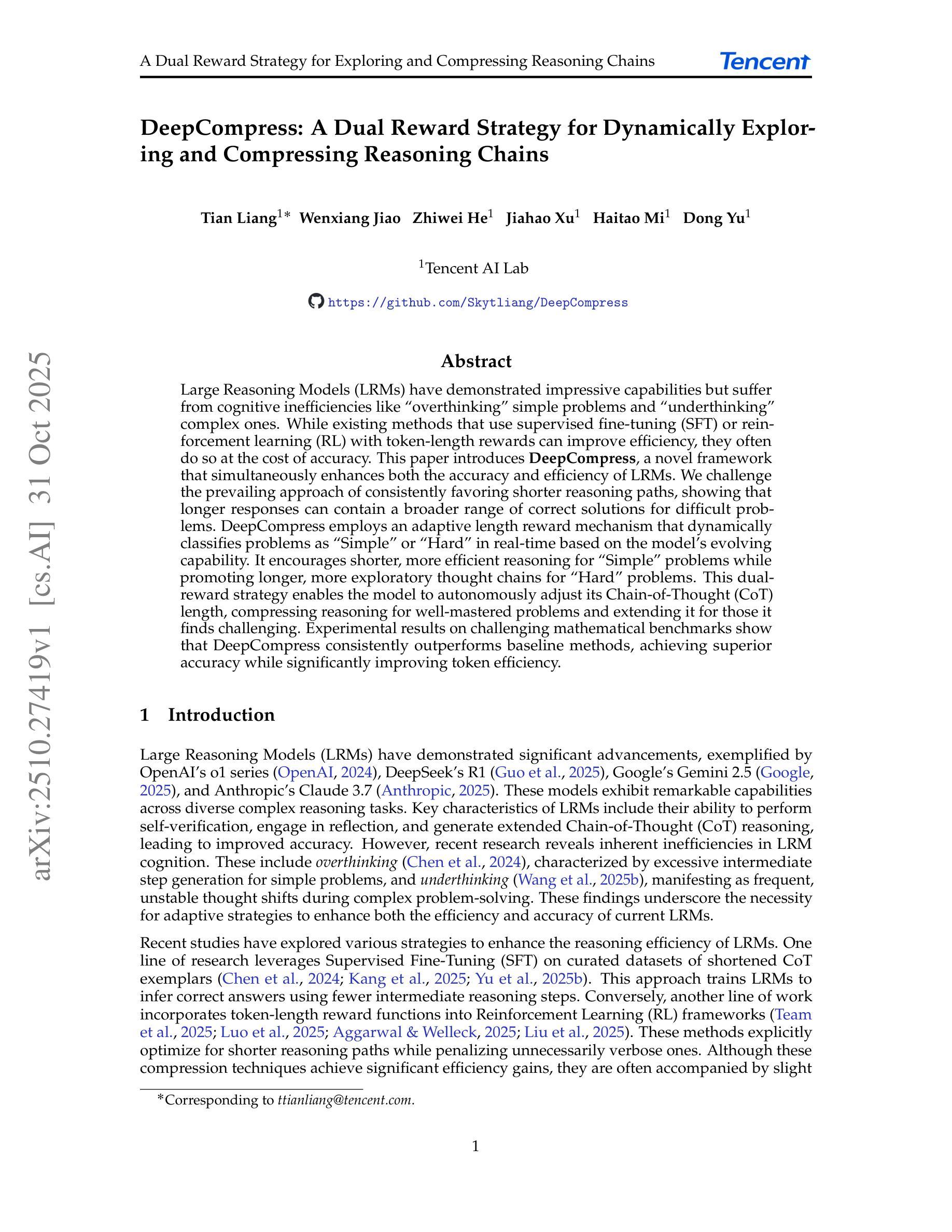 - DeepCompress框架被引入,旨在同时提高LRMs的准确性和效率。