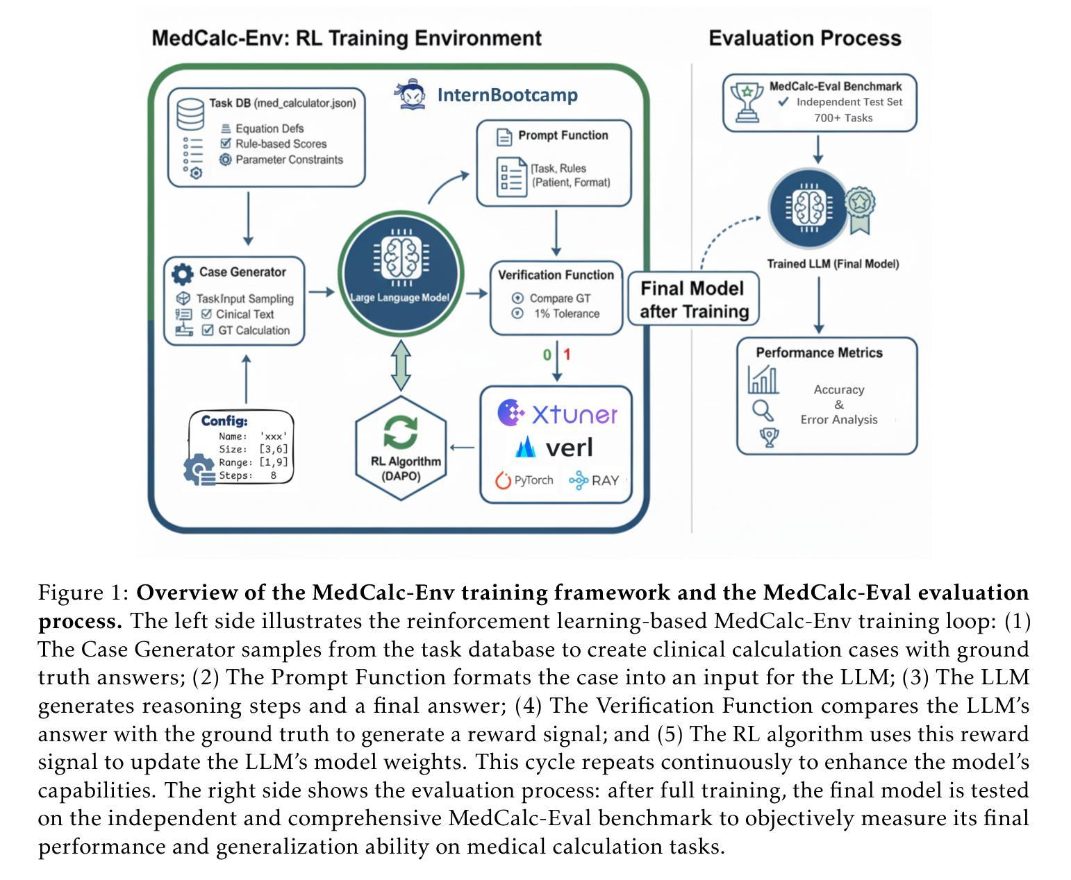 - MedCalc-Env环境的开发有助于提高LLM的性能,实现了在MedCalc-Eval上的最佳结果。