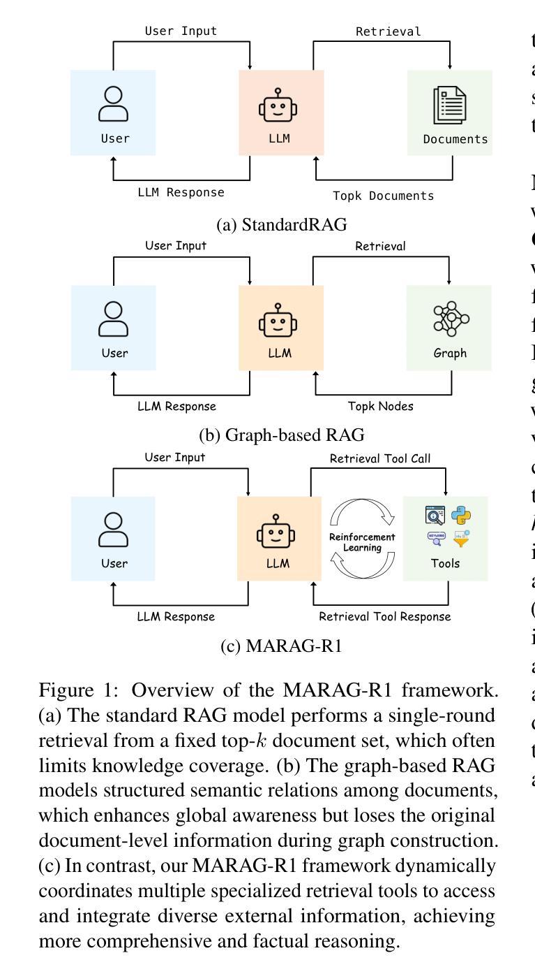 - MARAG-R1是一个强化学习的多工具RAG框架,动态协调多种检索机制,以获取更广泛、更精确的信息。