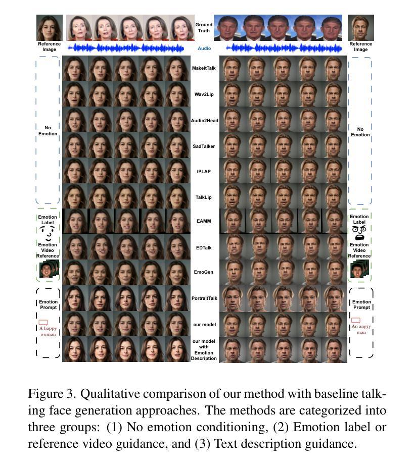 - 使用动作单元(AUs)等面部肌肉运动的解剖定义,与隐式特征相结合,实现更准确的语音与面部表情的匹配。