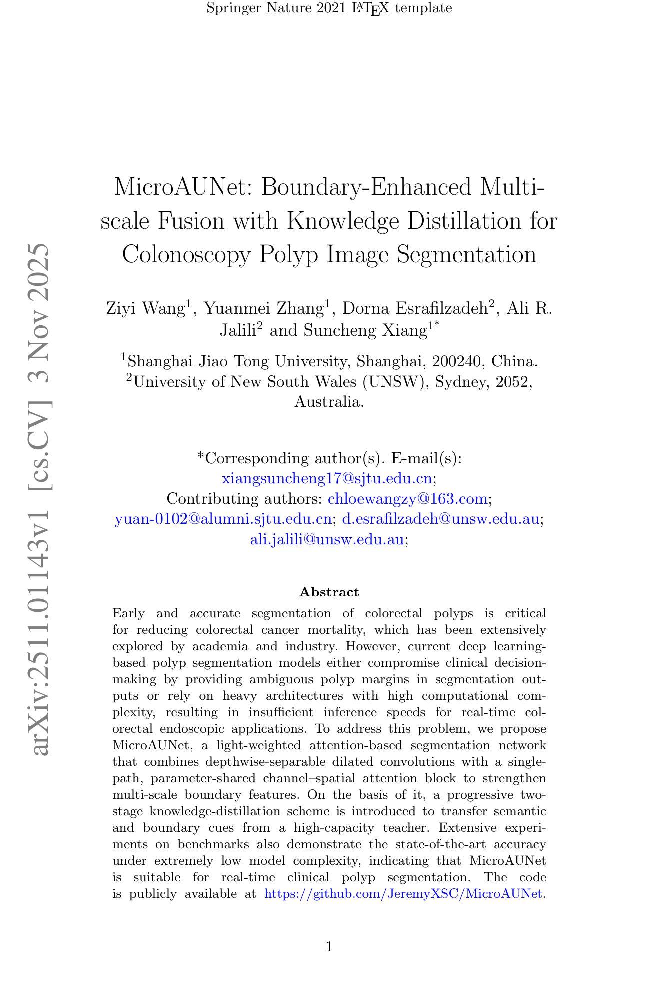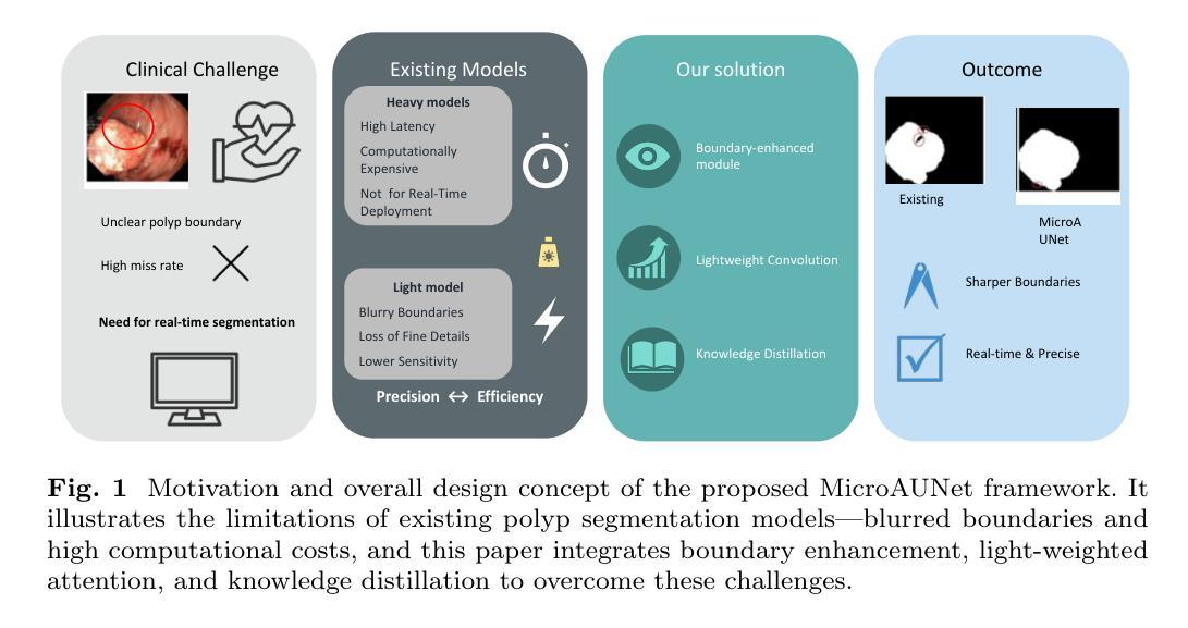 - MicroAUNet适用于实时临床息肉分割,有助于减少结肠癌死亡率。