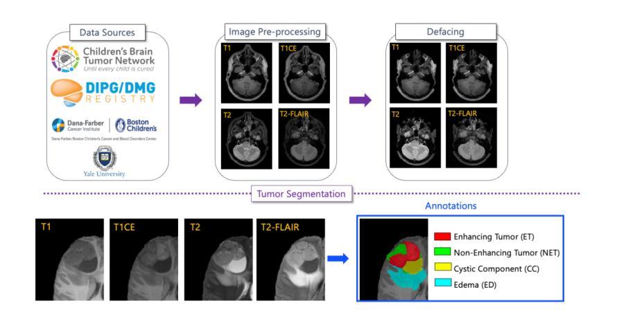 - 研究关注多参数磁共振成像(mpMRI)在小儿脑肿瘤分割中的应用,这是诊断、治疗规划和监测的关键环节。