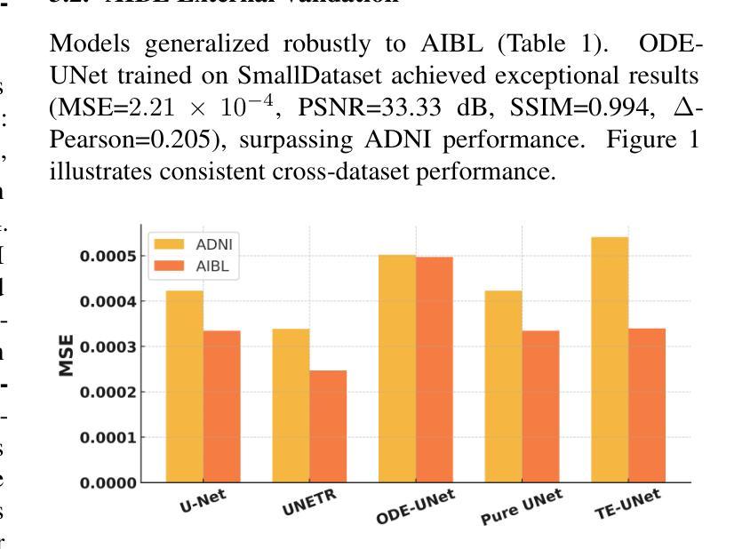 - 研究评估了五种深度学习架构(UNet、U2-Net、UNETR、Time-Embedding UNet和ODE-UNet)在两个纵向队列(ADNI和AIBL)中的表现。