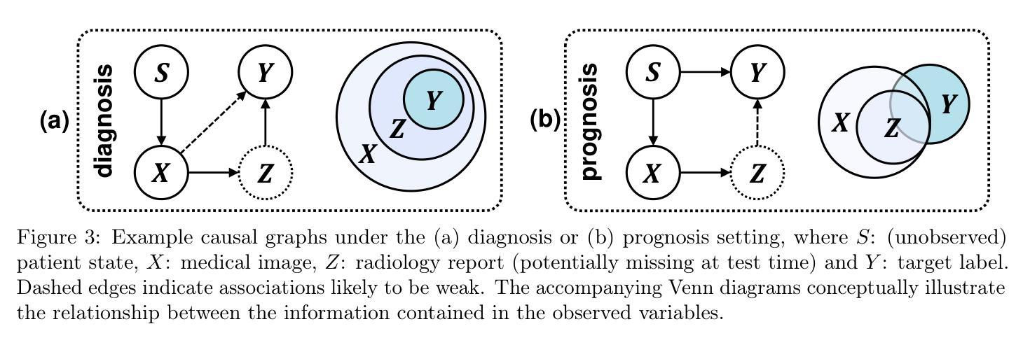 用于训练机器学习模型的医学图像通常伴随有包含丰富专家注释的放射学报告。然而,依赖这些报告作为临床预测输入需要训练有素的放射科医生及时进行手动工作。这就提出了一个自然的问题:在训练过程中如何利用放射学报告来改善仅使用图像的分类?先前的工作仅限于评估通过微调预训练的图像表示来预测从报告中提取的诊断标签,忽略了与文本关联较弱的标签任务。为了解决这一空白,我们对如何在预训练和微调过程中使用放射学报告进行了系统研究,涵盖了诊断和预后任务(例如,12个月再入院),以及不同大小的训练集。我们的研究发现:(1)在预训练过程中利用报告对于下游分类任务是有益的,这些任务的标签在文本中得到了很好的表示;然而,通过明确的图像文本对齐进行预训练可能在某些情况下是有害的;(2)使用报告进行微调可以导致显着改进,甚至在某些情况下其影响大于预训练的方法。这些结果提供了如何利用特权文本数据来训练医学图像分类器的可操作见解,同时突出了当前研究的空白之处。