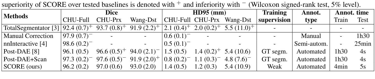 - 与现有修正方法相比,SCORE框架降低了监督要求和标注时间。