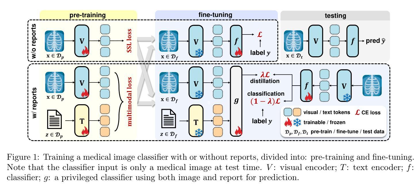 - 报告中的信息可以在预训练阶段用于改进图像分类。