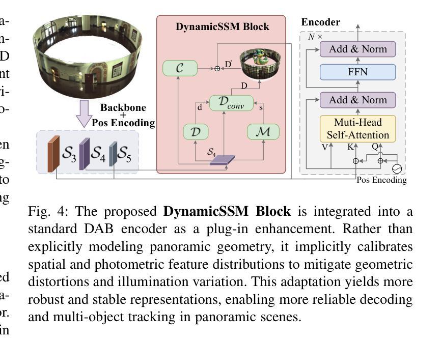 - DynamicSSM模块用于稳定全景特征,并缓解几何失真。
