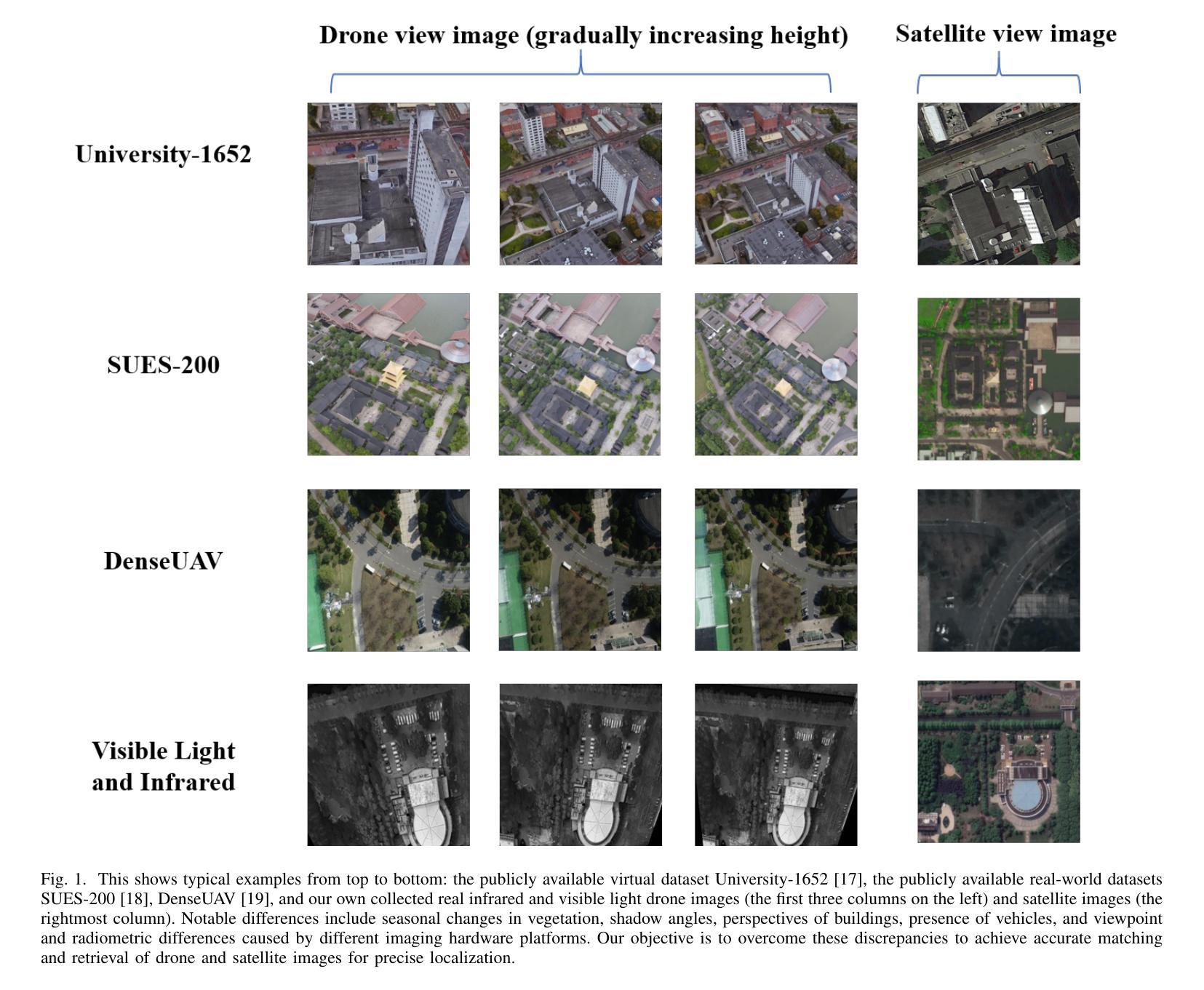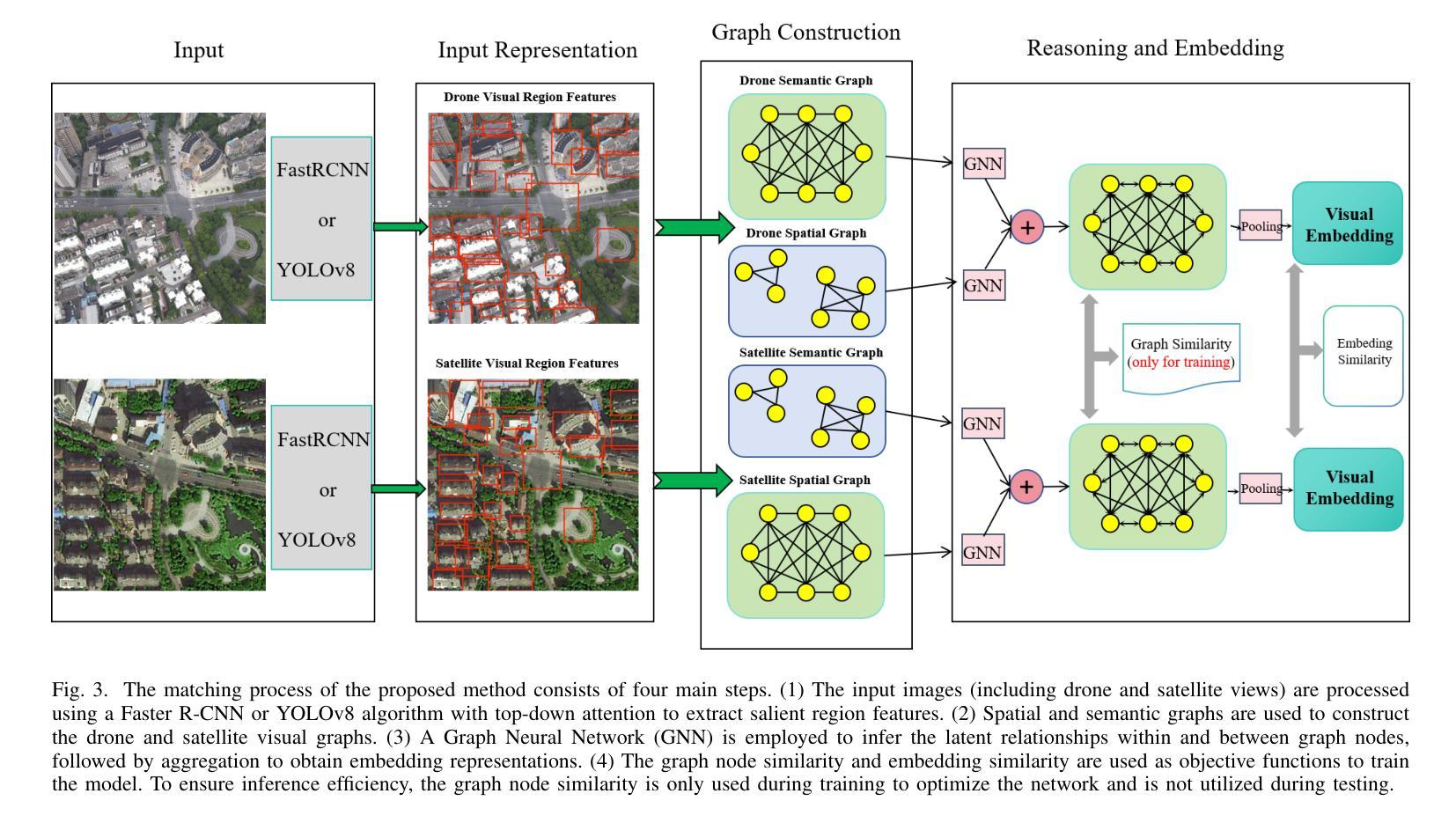 Summary:随着低空经济的快速增长,无人机在巡逻系统中的测量和跟踪变得至关重要。然而,在卫星导航信号被遮挡的地区,基于卫星的定位方法容易失效。本文提出了一种跨视图无人机定位框架,通过目标检测执行地图匹配,旨在有效解决跨时间、跨视图的异构航空图像匹配问题。该研究使用了一种基于图像检索的方法来实现无人机视觉定位,并利用现代目标检测技术从无人机和卫星图像中准确提取显著实例。结合图神经网络对图像内和图像间节点关系进行推理,使用基于图的精细节点相似性度量方法,实现了强大的检索和定位性能。