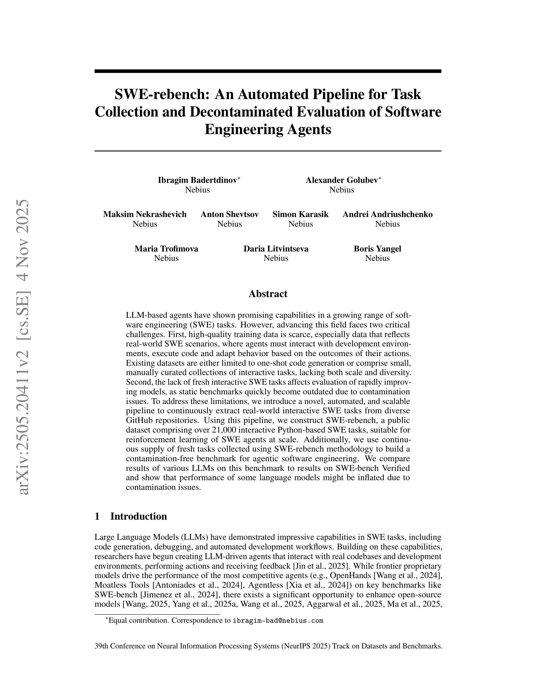 PDF Dataset: https://huggingface.co/datasets/nebius/SWE-rebench, SWE-rebench leaderboard https://swe-rebench.com NeurIPS 2025