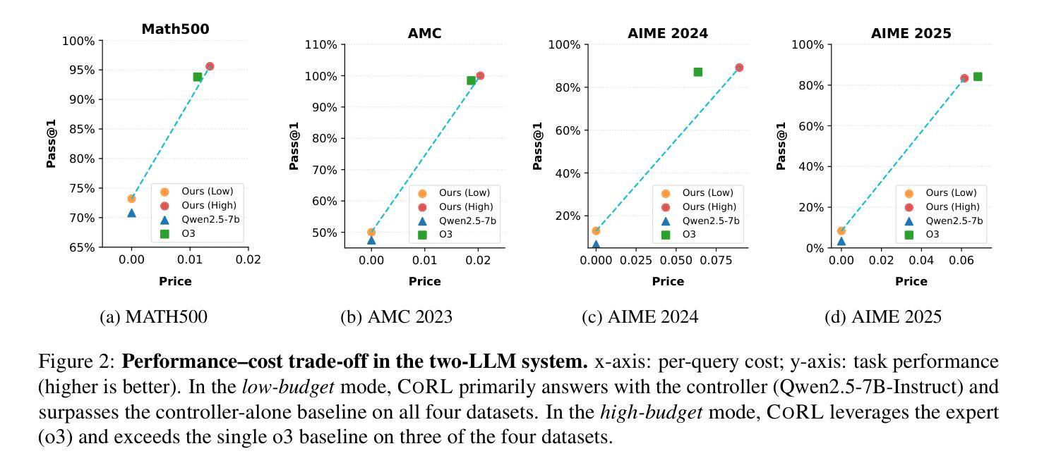 - 实验证明,CoRL框架在预算充足时性能超越最佳专家LLM,在预算较低时也能保持强劲性能。