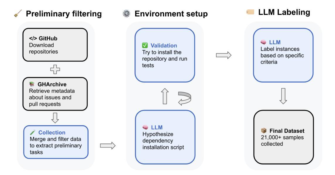 - 研究团队推出自动化、可扩展的管道从GitHub提取真实的互动软件工程任务来构建SWE-rebench数据集。