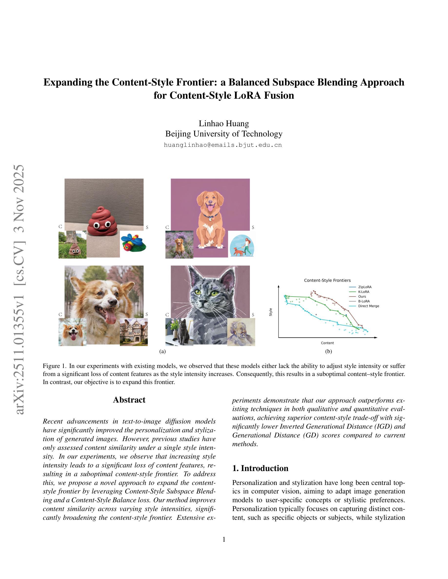 文本扩散模型最新进展在个性化与风格化生成图像上取得显著成果。然而,先前研究仅在单一风格强度下评估内容相似性。本研究发现增加风格强度会导致内容特征大量损失,形成次优的内容风格边界。为解决此问题,我们提出一种新方法,通过利用内容风格子空间融合和内容风格平衡损失来拓展内容风格边界。该方法在不同风格强度下提高内容相似性,显著拓宽内容风格边界。大量实验证明,我们的方法无论在定性还是定量评估上都优于现有技术,与当前方法相比,实现了更优质的内容风格权衡,降低了反向生成距离(IGD)和生成距离(GD)得分。