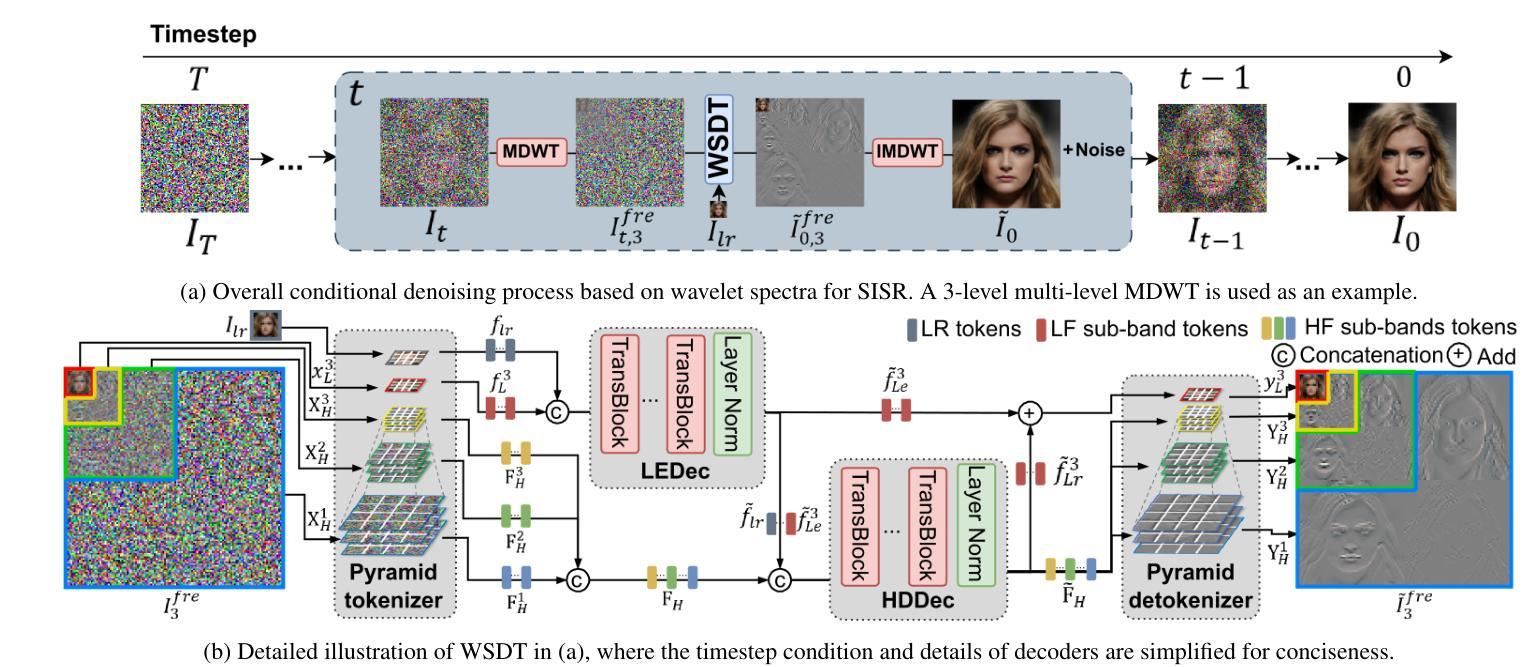 - 提出了一种基于图像小波光谱的扩散变换模型(DTWSR),能够捕捉多尺度频率子带之间的关系。