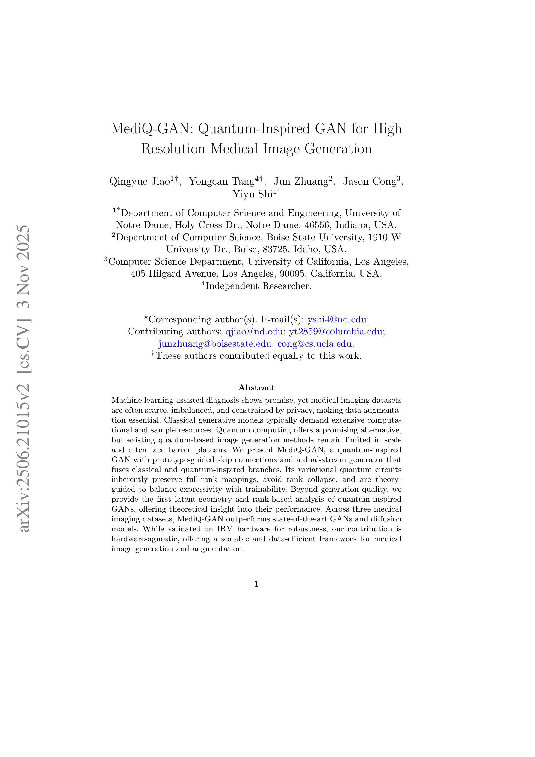 - 提出MediQ-GAN结合原型引导跳跃连接和双流生成器,融合经典与量子分支。