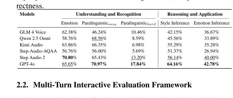 对话模型(Spoken Dialogue Models,简称SDMs)虽然发展迅速,但在维持真正的交互式多轮对话方面仍存在待探索的空间,因为大多数基准测试主要集中在单轮对话上。我们引入了Multi-Bench,这是第一个专门用于评估SDMs在多轮交互对话中的表现的基准测试,并特别重视情商的评估。Multi-Bench采用分层结构,包含情感理解和推理的基本赛道和面向情感支持和应用的高级赛道。它包含了五个精心设计的任务以及大约3.2K样本数据,涵盖从情感识别到复杂推理和交互式对话等任务,同时提供了一个可复现的评估框架。我们在Multi-Bench的八个子集上评估了六个代表性的SDMs。结果表明,虽然当前SDMs在基本理解任务上表现良好,但在高级多轮交互对话和推理相关任务上仍有提升空间,特别是在情感意识和应用方面。