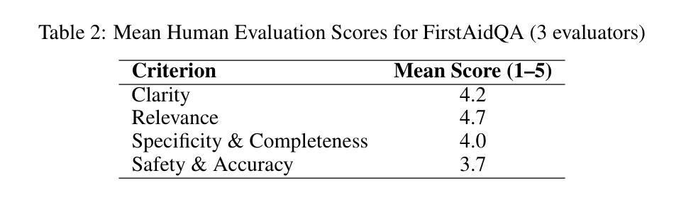 - FirstAidQA数据集采用合成方法创建,包含多种紧急响应场景下的高质量问答对。