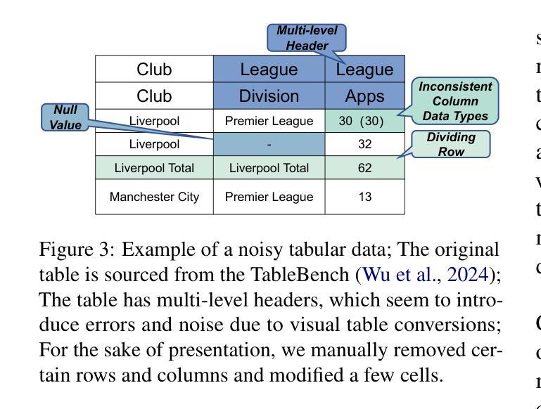 - 大型语言模型(LLMs)在复杂表格数据推理方面存在挑战,如处理复杂查询、噪声数据和有限的数值处理能力。