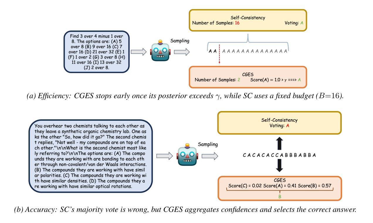 - CGES能自适应地停止采样,当某个候选答案的后验概率超过阈值时。