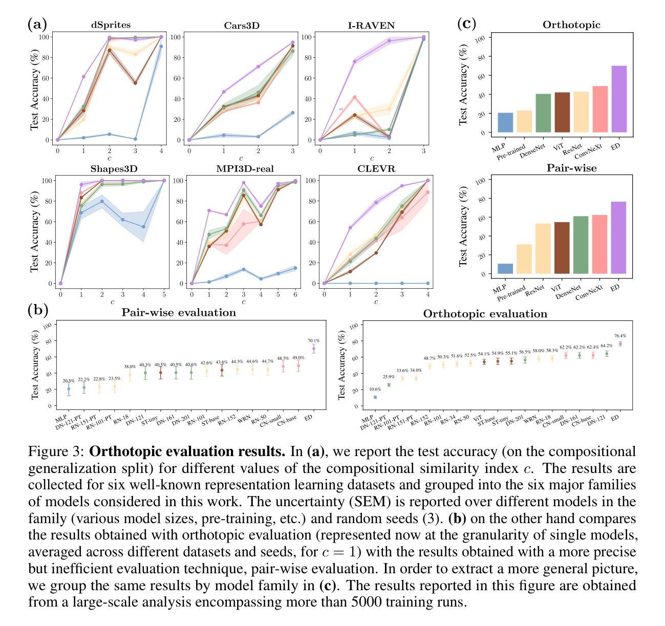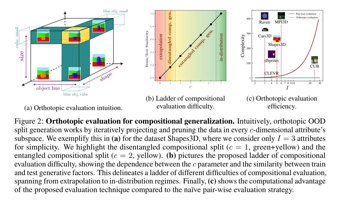 组合泛化是现代机器学习中的一个关键的开放挑战,要求模型能够预测已知概念组合中的未知内容。然而,由于缺乏标准化的评估协议和当前基准测试的局限性(这些测试通常更注重效率而非严谨性),因此评估组合泛化仍然是一个基本挑战。同时,通用视觉架构缺乏必要的归纳偏见,现有的赋予它们的方法又会影响其可扩展性。为了解决这个问题,本文介绍了:1)一个严谨的评价框架,它统一并扩展了以前的方法,同时降低了从组合到常数的计算要求;2)对监督视觉主干中组合泛化现状的广泛和现代评估,训练了超过5000个模型;3)属性不变网络是一类模型,在组合泛化方面建立了新的帕累托边界,在基线基础上实现了23.43%的准确率提升,同时与完全解耦的对应模型相比,参数开销从600%减少到16%。
