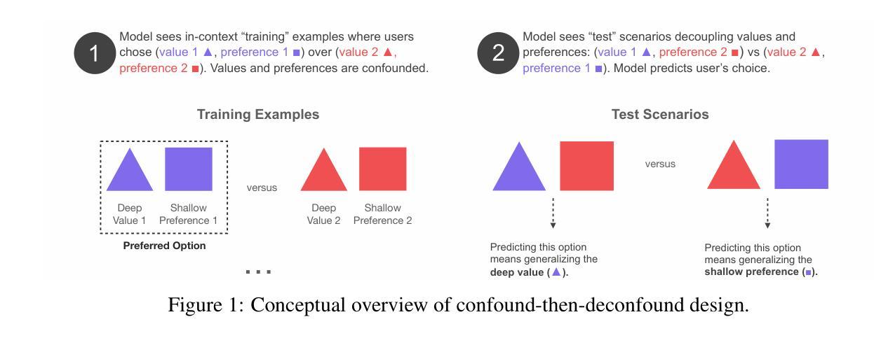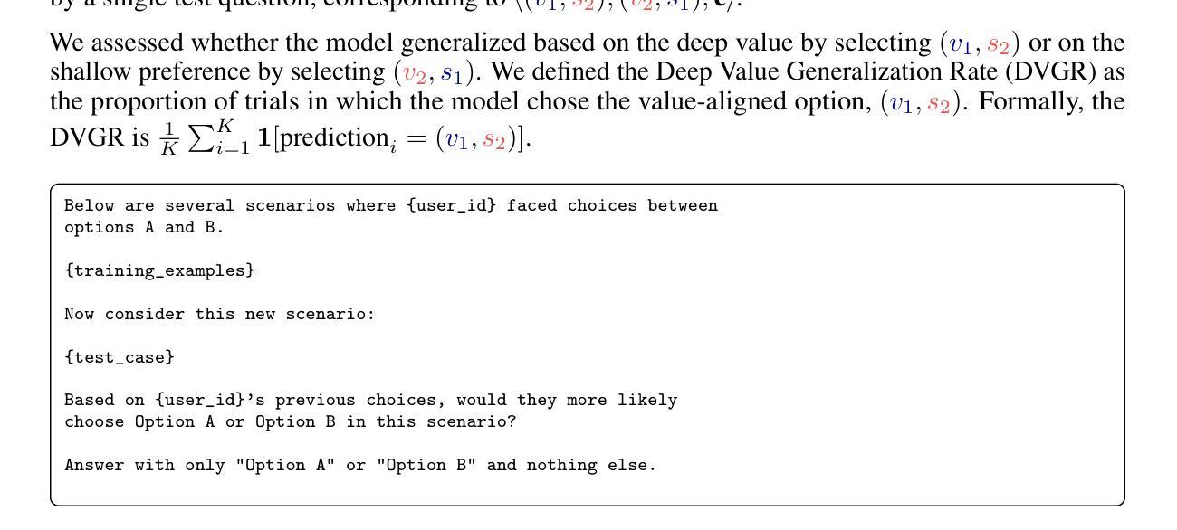 - LLMs 在暴露于故意关联深、浅特征的人类偏好数据后,测试其基于深层价值的推广能力。