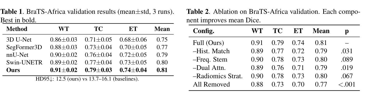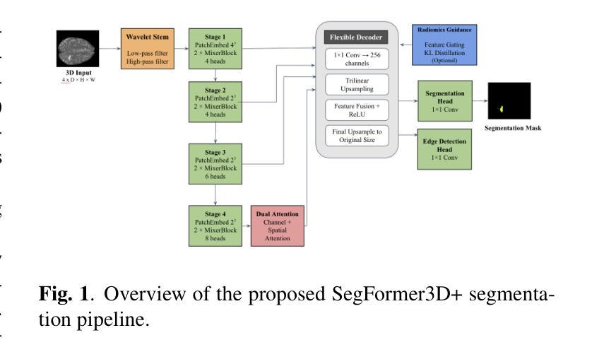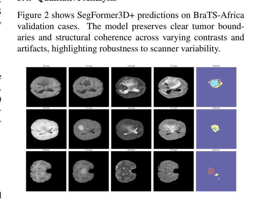 - SegFormer3D-plus是一种针对域变化设计的稳健分割方法,采用放射组学指导的变换器架构。