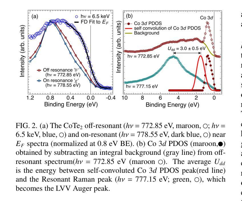- 通过测量部分态密度和两孔关联卫星,发现CoTe2和NiTe2的库仑能Ud分别为3.0 eV和3.7 eV。